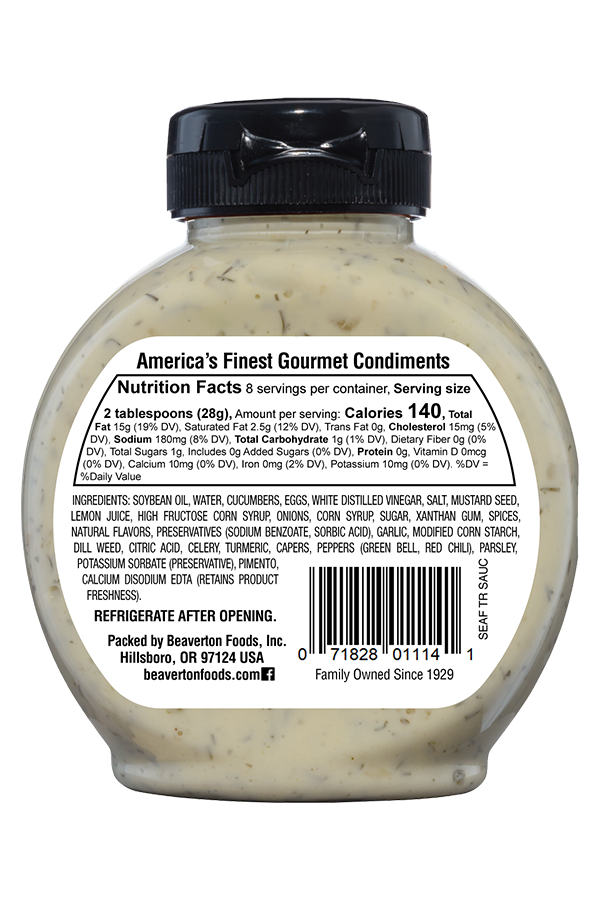 - Beaverton Foods FanHello, I live in Wisconsin and just wanted to reach out to you because I love your tartar sauce! I have been searching for some time to find a great tartar sauce to keep stocked in my pantry to have with fish, fries, etc…and this is it! Excellent product and will likely try the mustards and horseradish very soon as well. Delicious noticeable dill flavor and excellent overall quality!!! I will be a forever customer.