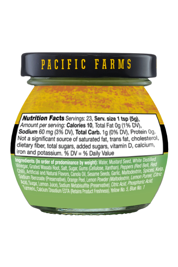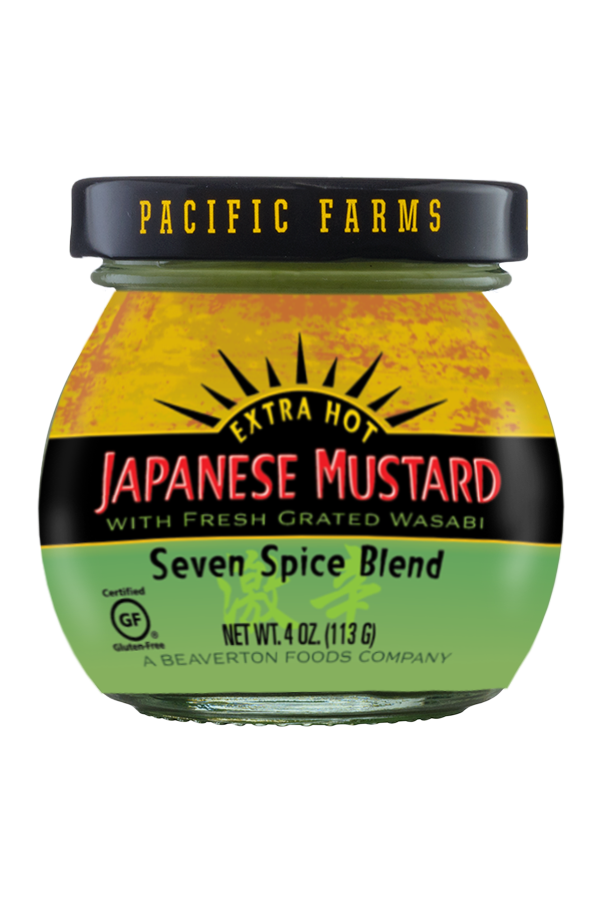 Pacific Farms Japanese Hot Mustard is made with mustard seed, authentic spices, and fresh Pacific Farms wasabi. This new product is the perfect balance of the heat you’d expect from fresh wasabi and flavor from our unique seven-spice mustard mixture.