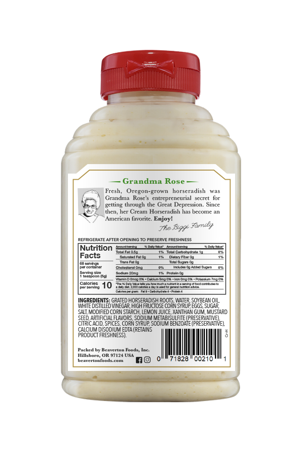 - Eden BuchananI just want to commend you on the products I am enjoying so far. Your “Stone Ground Mustard” has always been a favorite, and recently bought your Cream Style Horseradish. Now I put it on almost everything (although granola doesn’t work). Glad to see company origins 1929 and still going strong!