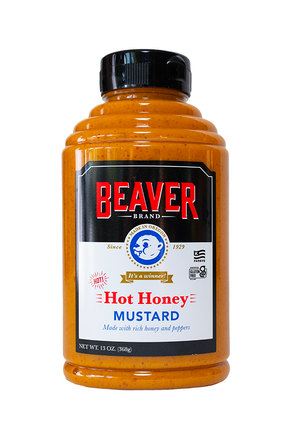 This bold new Beaver Brand mustard offers the perfect contrast between the smooth sweetness of honey and the warmth of our unique spices and pepper blend. Made with premium mustard seeds, honey, vinegar, and chili peppers, this balanced mustard is sweet, tangy, and spicy. Versatile and full of flavor, our Hot Honey Mustard is perfect as a dipping sauce, sandwich spread, salad dressing base, or a glaze for meats.