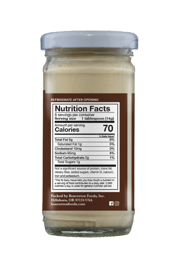 - Beaverton Foods FanHello, I live in Wisconsin and just wanted to reach out to you because I love your tartar sauce! I have been searching for some time to find a great tartar sauce to keep stocked in my pantry to have with fish, fries, etc…and this is it! Excellent product and will likely try the mustards and horseradish very soon as well. Delicious noticeable dill flavor and excellent overall quality!!! I will be a forever customer.