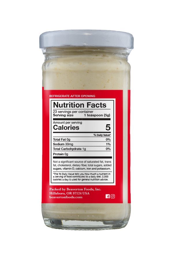 Think you can handle the horseradish heat? Beaver Extra Hot Horseradish is the perfect condiment for anyone who likes food spicy… and we mean really spicy. Our horseradish is made with 100% pure, fresh grated horseradish roots and classically pairs with any red meat. Mix with mayonnaise to minimize the heat.