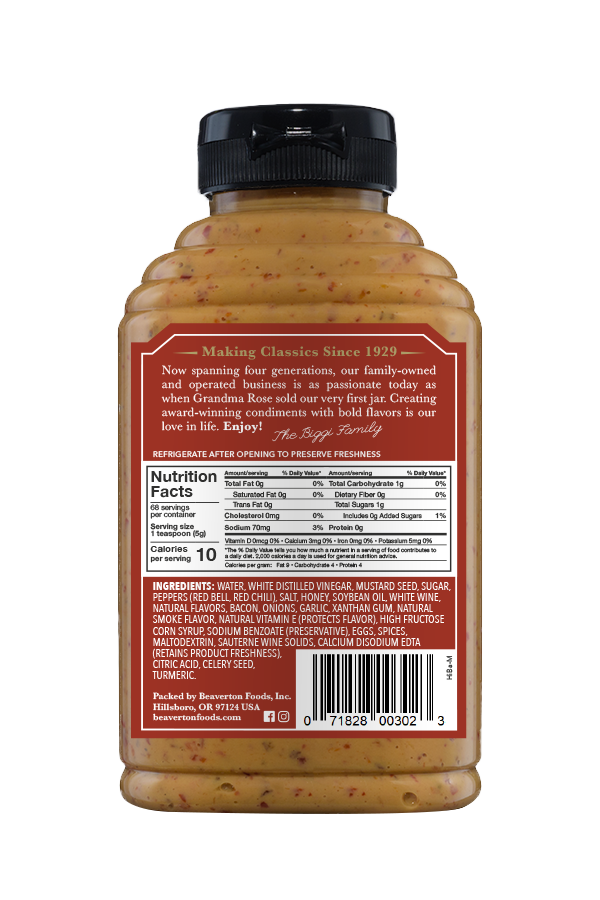 What isn’t better with bacon? Beaver Hickory Bacon Mustard features a robust bacon flavor. Yes, that’s right – bacon! This mustard’s unique, delicious flavor pairs well with any hot dog, sandwich or burger. If you like bacon, you’ll like this mustard.