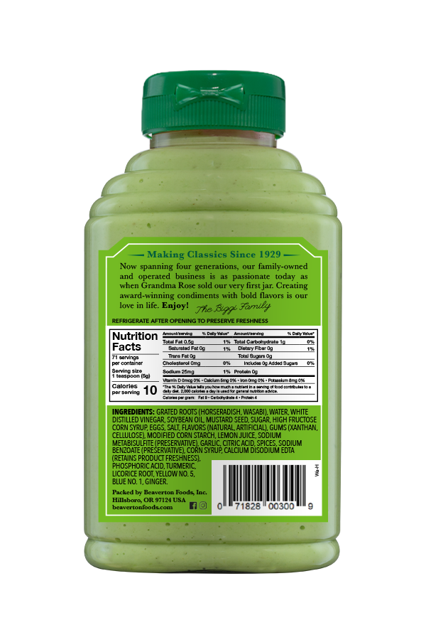 Calling all spicy lovers! Beaver Wasabi Horseradish is gluten free and made with 100% fresh grated wasabi and horseradish roots. It features a double dose of two heat and flavor perfect for your next spicy meal.