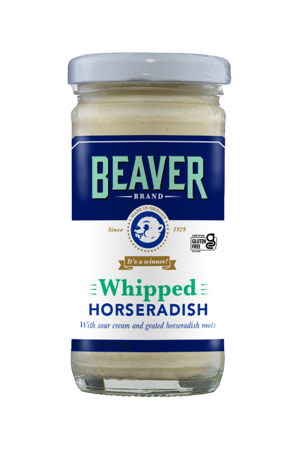 Beaver Brand Whipped Horseradish is made with 100% freshly grated horseradish and is deliciously light and flavorful. We’ve added smooth sour cream to tone down the horseradish heat while still maintaining the zestiness you love. Try it with seared steak or even on a lamb burger – it pairs great with any red meat.